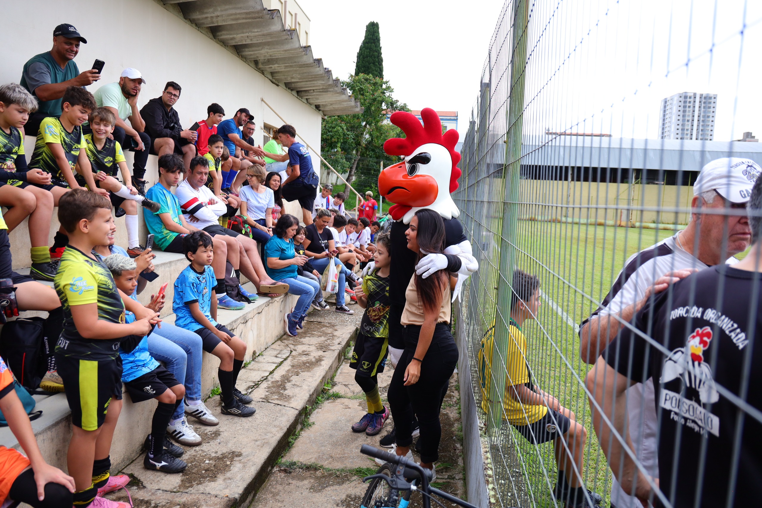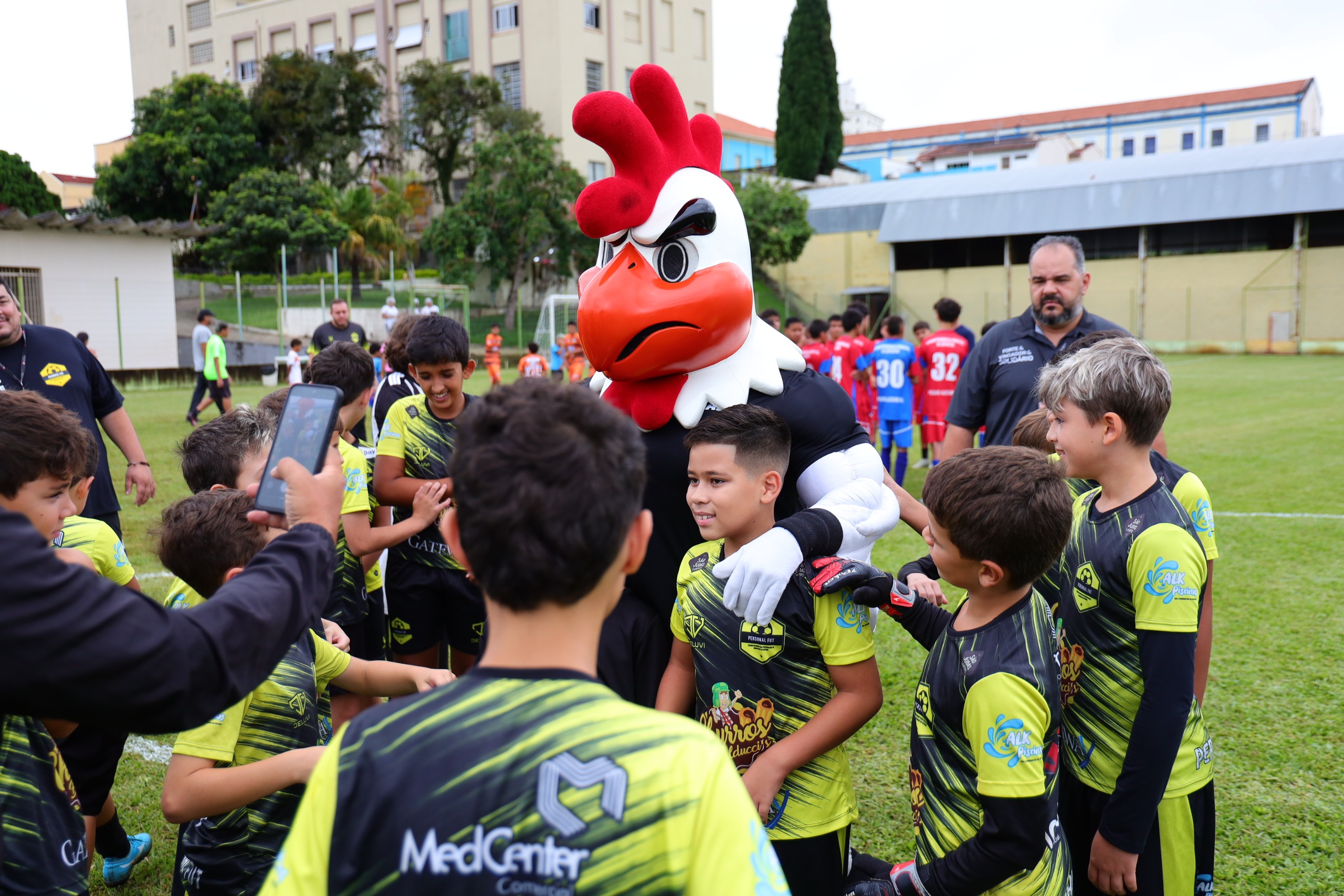 A primeira atividade aconteceu na Escola Profissional, onde crianças das escolinhas de futebol da Prefeitura participaram de um momento especial de integração, lazer e incentivo ao esporte. A programação contou com brincadeiras, aquecimento coletivo e a presença do mascote Galo Doido, que animou os alunos e fez a alegria da criançada. Em seguida, foram realizados jogos amistosos entre as equipes municipais.