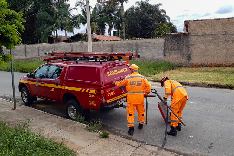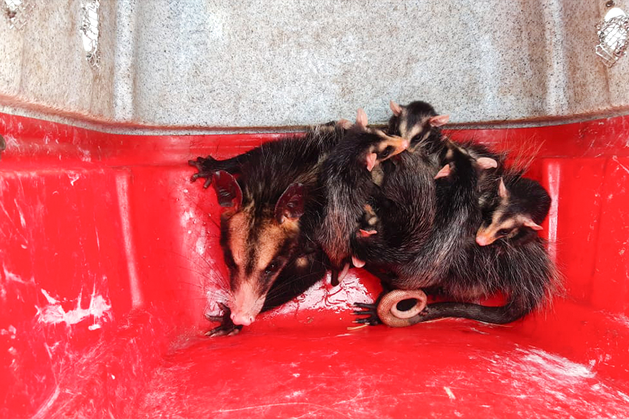 Corpo de Bombeiros resgata família de gambás em unidade escolar de Pouso Alegre