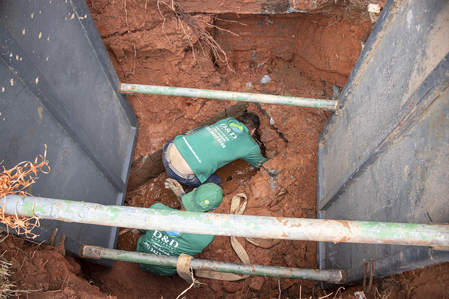 Prefeitura encontra toras de madeira obstruindo tubulação próxima à Câmara Municipal