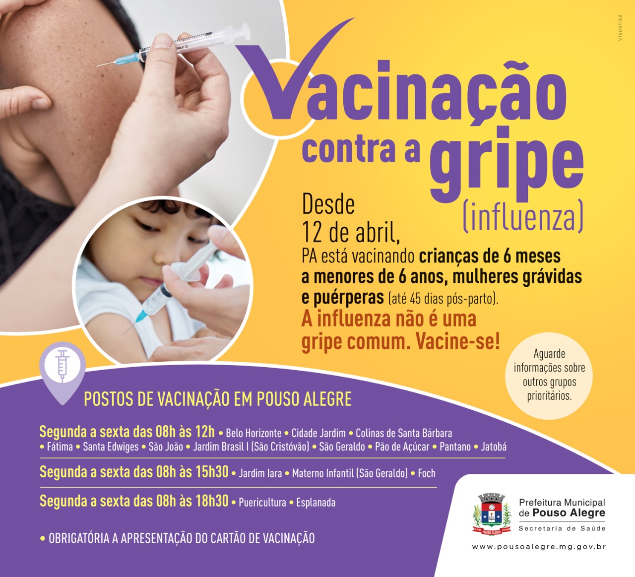 Pouso Alegre prossegue vacinação contra a GRIPE em diversos Postos de Saúde