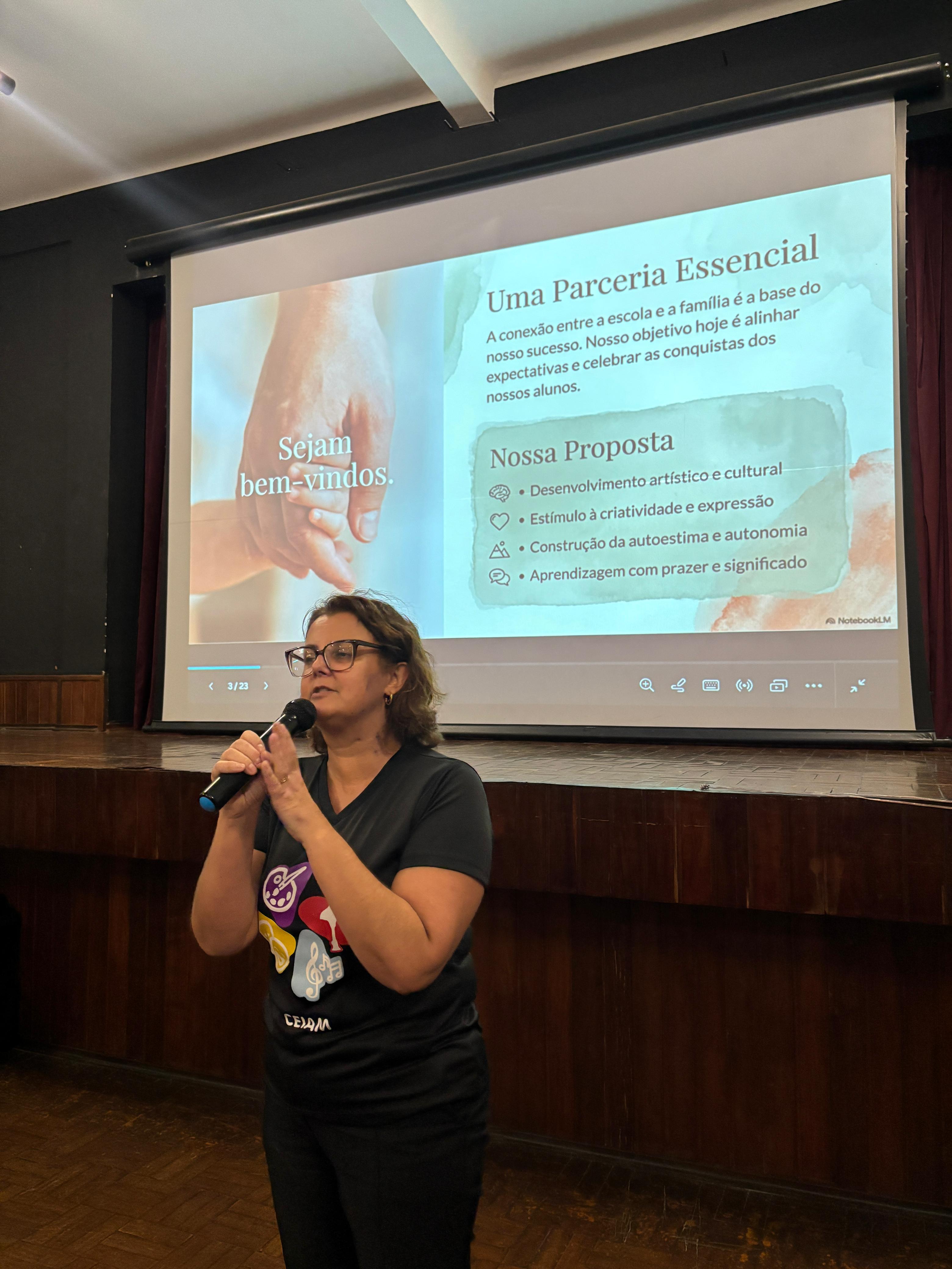Como parte do planejamento estratégico para um ano de novas conquistas, os profissionais do CEIAM realizaram a primeira reunião de 2026 com pais e responsáveis nesta quarta-feira (25). O encontro, realizado no anfiteatro do Colégio São José, teve como objetivo alinhar as diretrizes pedagógicas e fortalecer a conexão entre a escola e as famílias — pilar que sustenta o desenvolvimento humano e artístico dos alunos desde a fundação do centro, em 2023.
